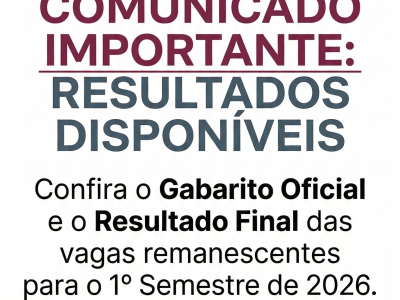 Confira o Gabarito Oficial e o Resultado final das vagas remanescentes do 1º Semestre de 2026